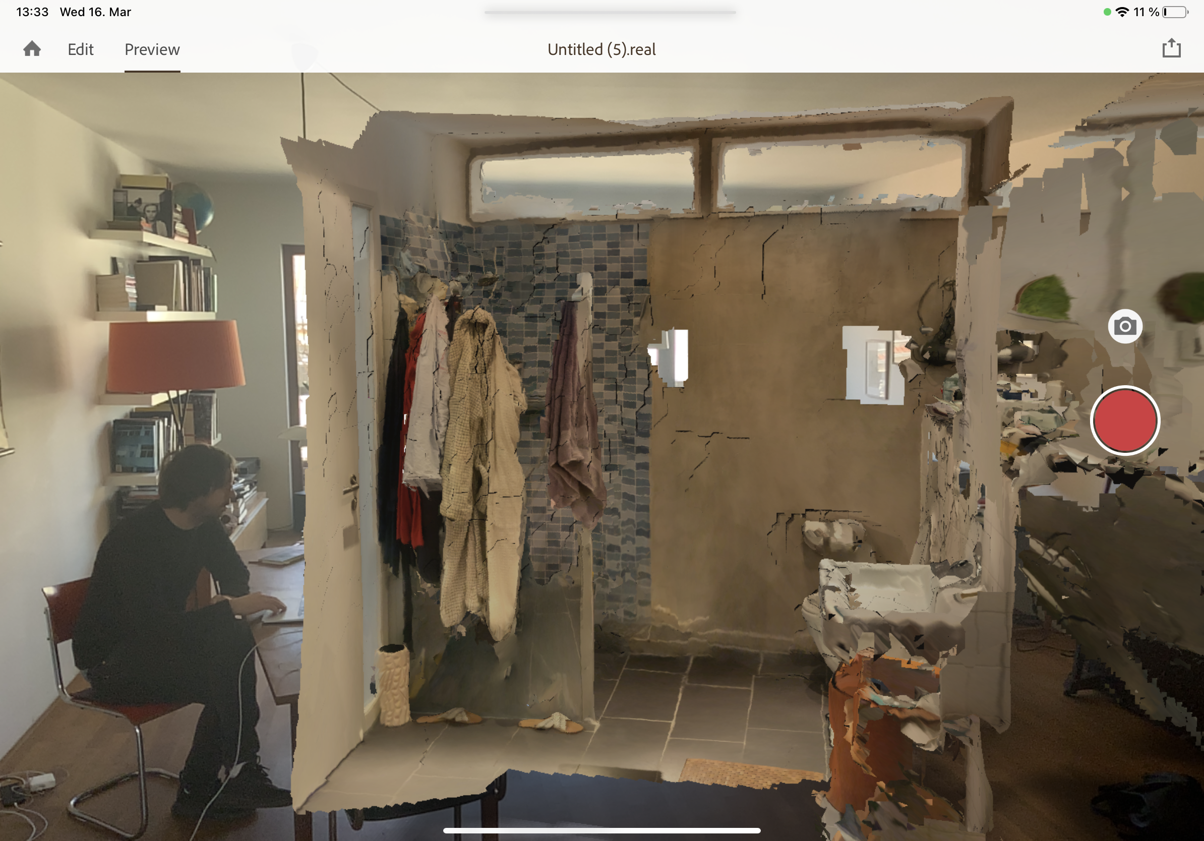 Christiane has been doing photogrammetry tests. She spends the morning scanning a sneaker