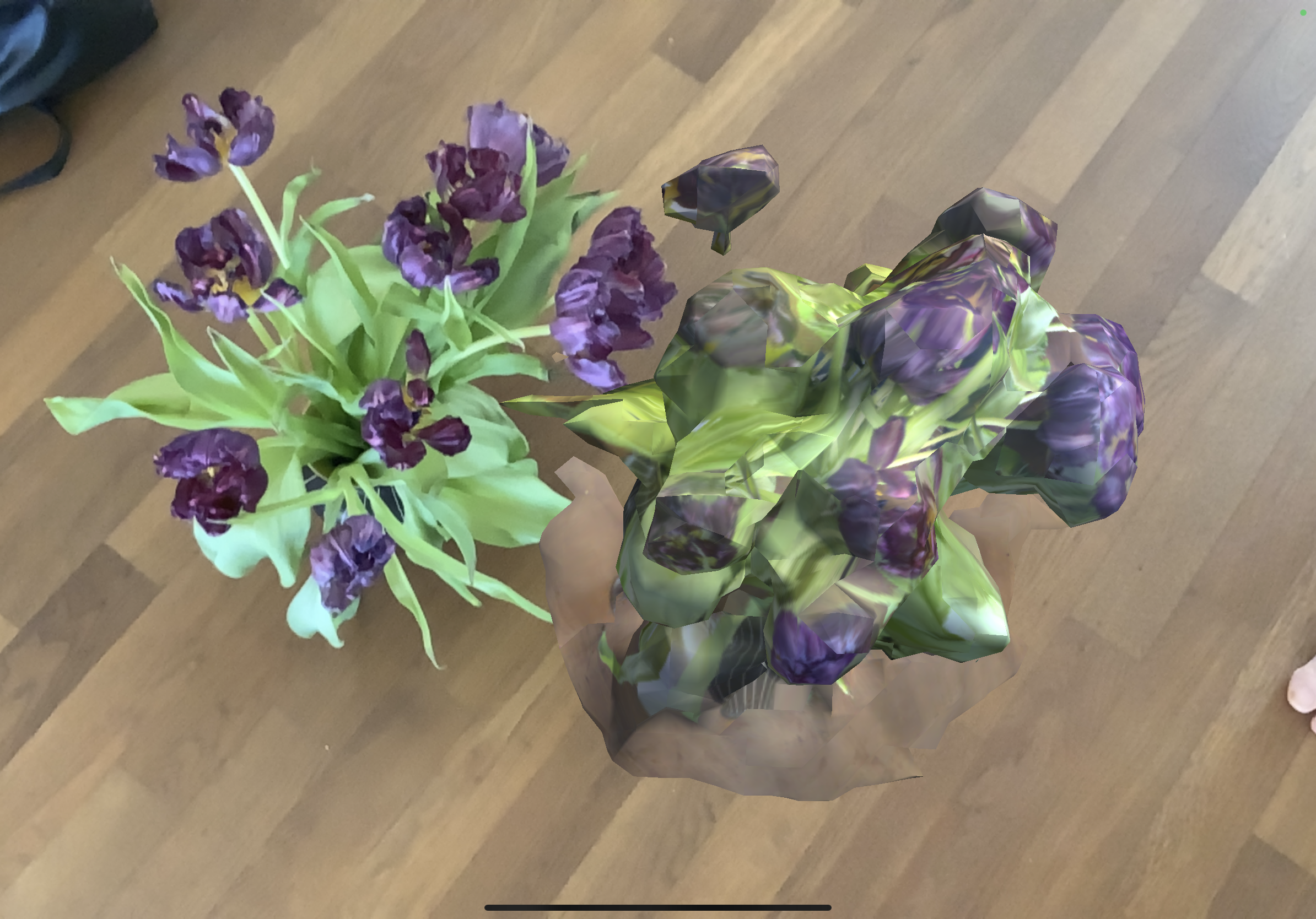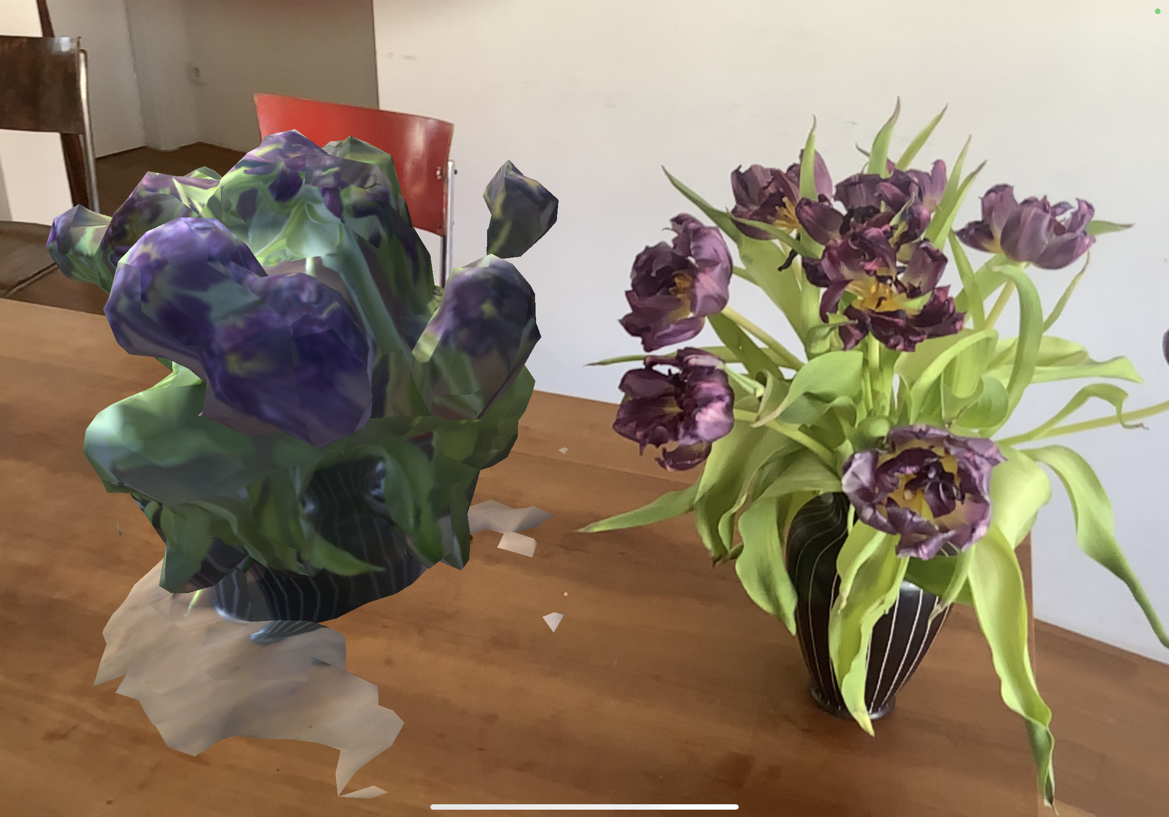 we scanned the flower vase to turn it into a 3D object and then planted it next to the the real thing