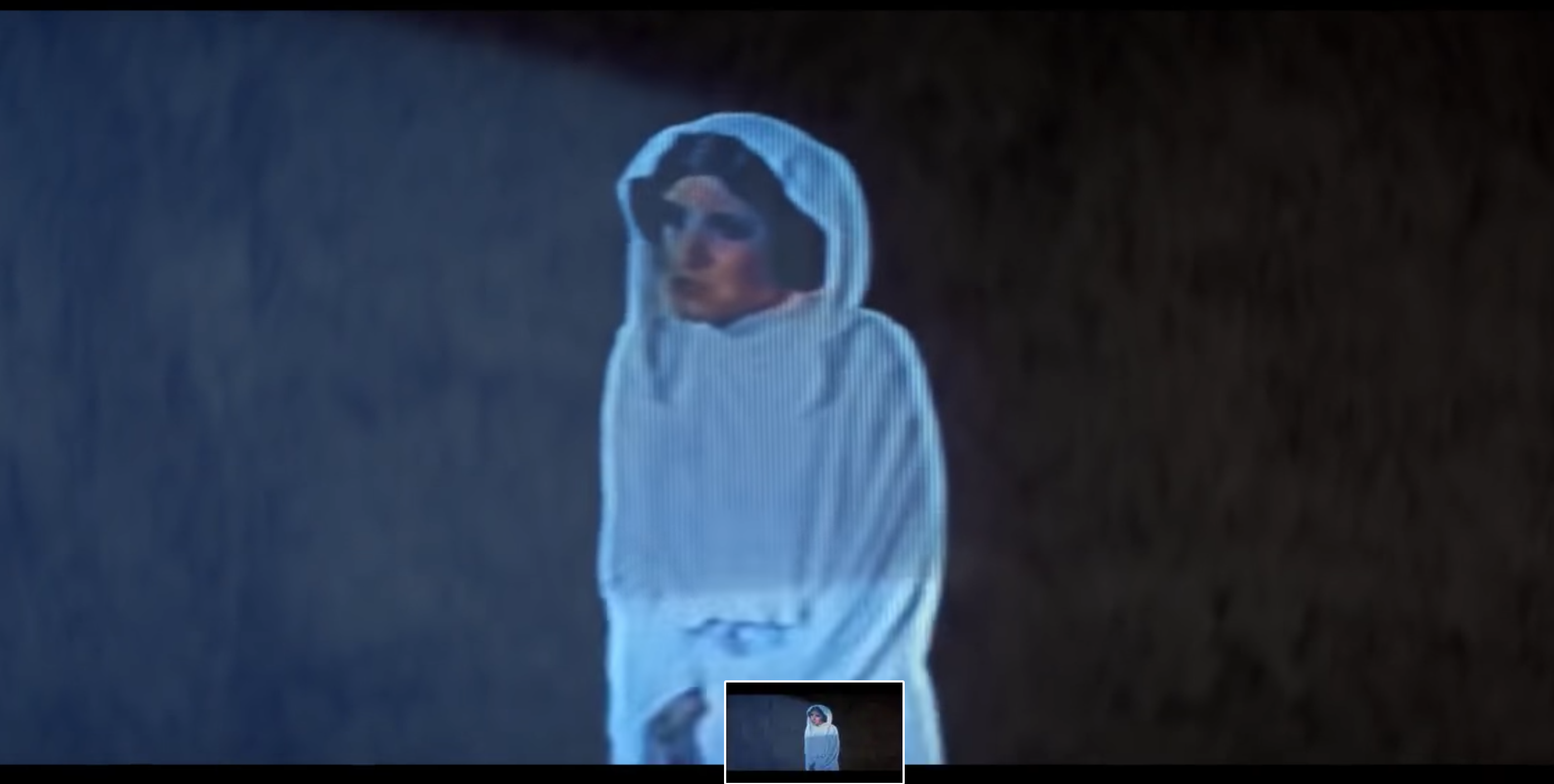 Princess Leia in Star Wars delivers a message.